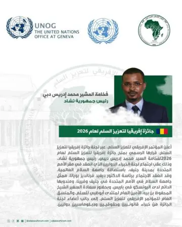 La Conférence africaine pour la promotion de la paix a annoncé que le président tchadien Mahamat Idriss Deby avait remporté le Prix africain pour la paix 2026, après une décision prise par le comité du prix lors d’une réunion tenue à Genève.