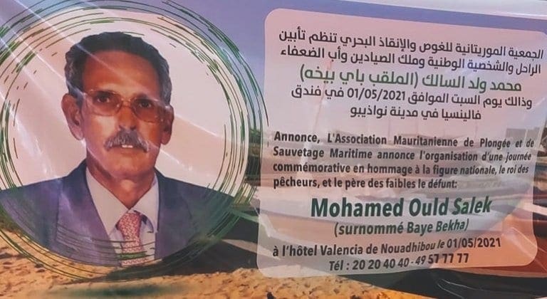 L’association mauritanienne de plongée et sauvetage maritime a organisé dans la nuit de samedi à dimanche une soirée commémorative pour saluer la mémoire du défunt Mohamed O. Saleck alias BAYE BEKHA, décédé le 21 mars dernier.